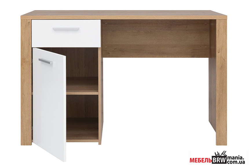 СТОЛ КОМПЬЮТЕРНЫЙ BRW BALDER BIU/120 ДУБ РИВЬЕРА /БЕЛЫЙ ГЛЯНЕЦ от польской мебельной фирмы Блэк Ред Вайт отлично подойдет для кабинета или детской в современных интерьерных решениях. К этому подталкивает фактурный оттенок корпуса (капучино) и фасада (мокка). Характеристика письменного стола впечатляет и радует качеством задействованных материалов в производстве, фирменными петлями, роликом, модерным дизайном. Корпус рабочего стола выполнен из ДСП, фасад – из ламинированной ДСП. Приобрести письменный стол нужно всем, кто ценит качество и эстетику товара. Цена полностью оправдывает эти показатели. Купить компьютерный стол BALDER можно прямо сейчас в нашем интернет-магазине.