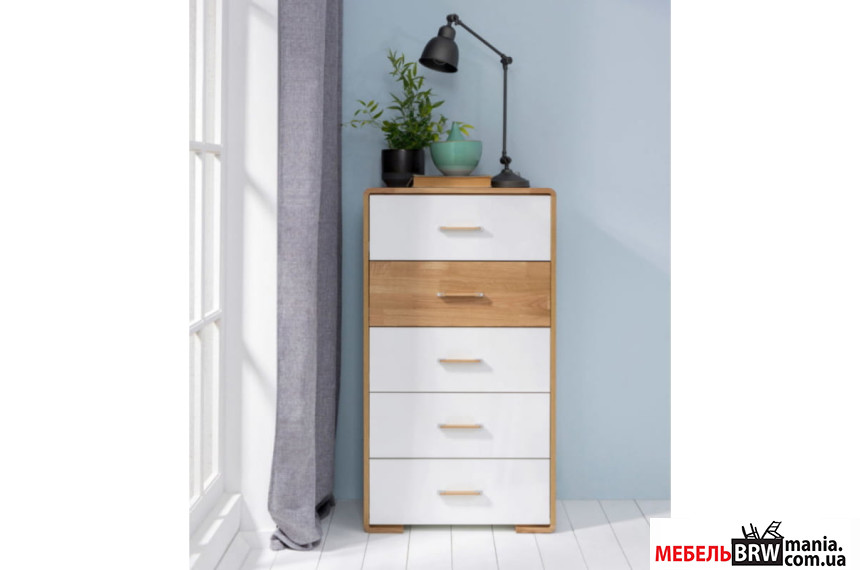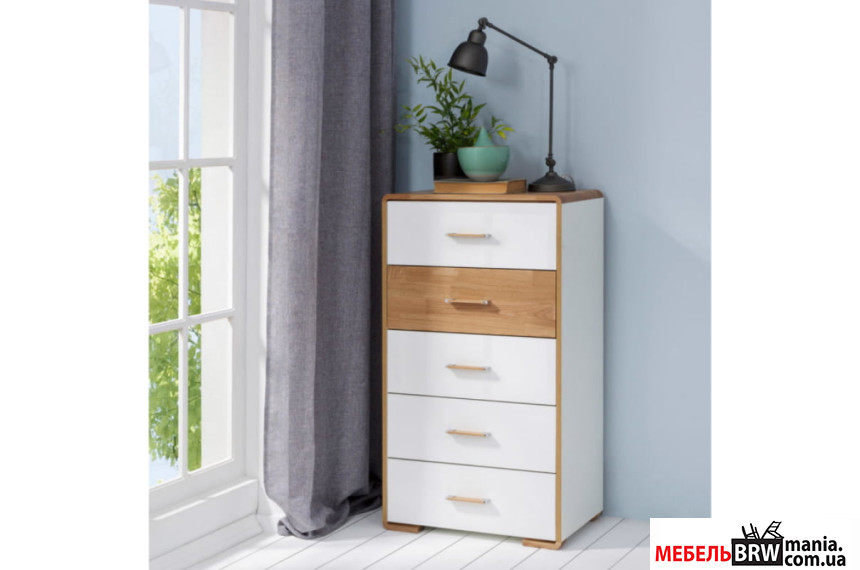 КОМОД BRW BARI KOM5S БЕЛЫЙ ГЛЯНЕЦ/ ДУБ НАТУРАЛЬНЫЙ от популярной мебельной