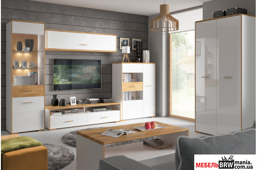 изготовлен в цветовой схеме «белый глянец/дуб натуральный». Характеристика