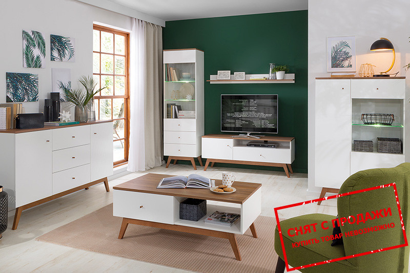 Мебель Хеда от БРВ-Польша – это набор разнообразных модулей с уникальным дизайном. Отличительным акцентом мебели является деревянная рама, которая ловко расположилась снизу каждого мебельного атрибута. Стройные ножки добавляют мебели легкости, благодаря которой комоды, полки или витрины будут хорошо располагаться не только в просторных гостиных, но и в небольших комнатах. Колоритные мебельные столешницы и милые ручки дают отчетливый контраст блестящим белым фронтам.