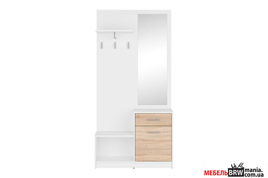 современной входной комнаты. Палитра изделия – дуб сонома/белый/дуб монастери –