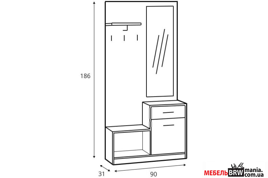 крючков, тумбу для обуви, шкаф с реей и большое зеркало в полный рост.