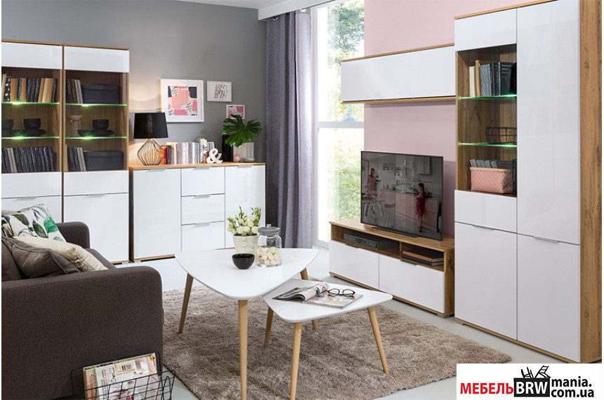 ТУМБА ПОД ТЕЛЕВИЗОР BRW ZELE RTV2S ДУБ ВОТАН / БЕЛЫЙ ГЛЯНЕЦ, концепция которой придумана производителем мебели Блэк Ред Вайт успешно приукрасит любую
