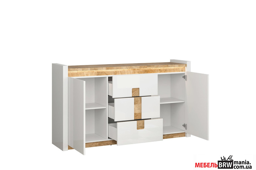 Комод Alameda KOM2D3S BRW 2-дверный с 3 ящиками Белый глянец/дуб вестминстер