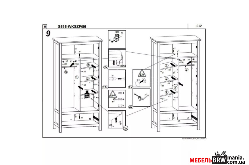 Описание: Полки к шкафу SZF2D1S/20/10 Hesen WKSZF/86 BRW Графит