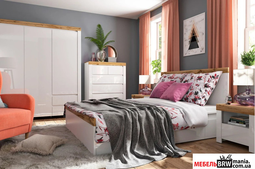 Описание: Кровать (каркас) LOZ/160 Holten BRW Белый/белый глянец