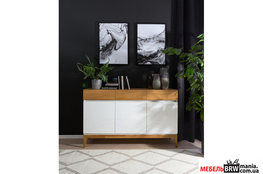 КОМОД KIOTO KOM3D3S BRW, производством которого занимается очень известная компания мебели БЛЭК РЕД ВАЙТ, удовлетворит ваш вкус по максимуму, а также “подкинет” множество идей, что касаются дальнейшего обустройства вашего пространства дома или на работе. Белый, белый глянцевый и дубовый натуральный цвет использован очень гармонично и изысканно. Комод оснащен тремя ящиками и тремя дверями. Высокая продуманность концепта мебельного атрибута создает ощущение гармонии. Элемент мебели имеет доводчик, что обеспечивает равномерное и тихое закрытие. Сырье высокого класса (мебельная плита, дерево натуральное и шпон) обеспечило атрибуту надежность, безопасное использование и износостойкость. Современный стиль изделия предполагает широкое использование в большинстве интерьеров нашей эпохи. Препятствий к приобретению нет никаких, цена этому подтверждение. В любое удобное время будет уместно КОМОД KIOTO KOM3D3S BRW.