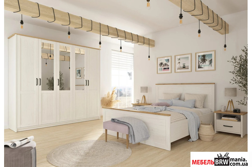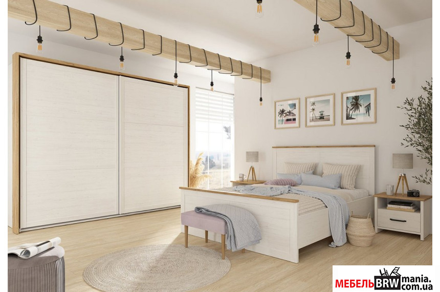 Описание: Кровать (каркас) Loksa LOZ/160/A BRW Сосна андерсен белый/дуб грандсон