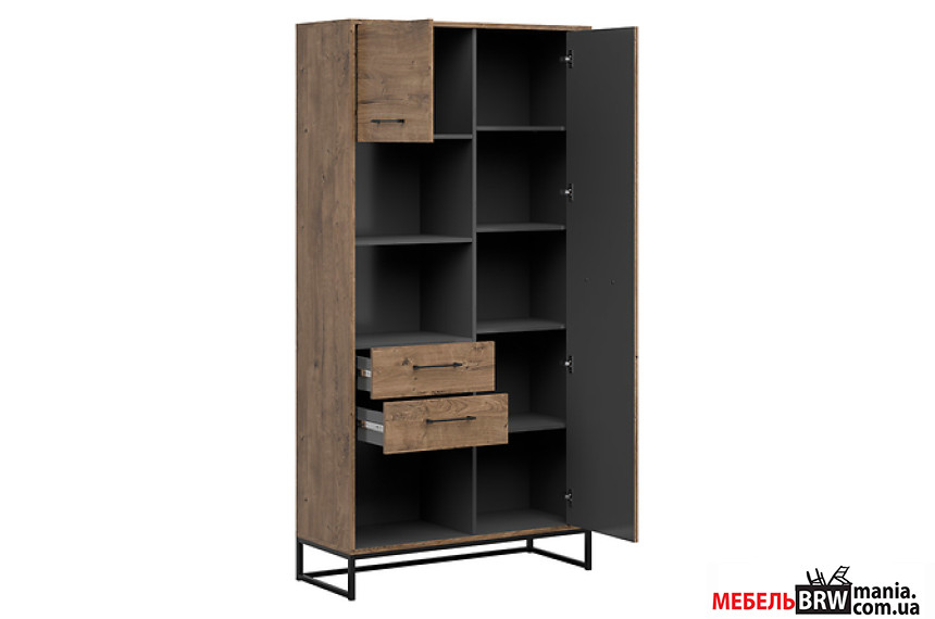 Описание: Стеллаж Luton REG2D2S BRW 2-дверный с 2 ящиками Дуб риббек коричневый/графит