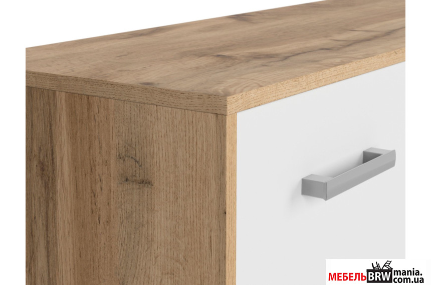 КОМОД MATOS KOM3D1S BRW, производством которого занимается известная польский холдинг мебельных изделий «Блэк Ред Вайт», покорит вас не столько показателями внешнего плана, как своими функциональными возможностями и показателями качества. Характеристика мебельной атрибутики состоит в плавной форме, красивом цвете «дуб вотан» и «белый», удачной концепции эргономики из мебельной плиты. Интерьерное наполнение нашей эпохи предполагает частое прибегание к современному стилю, оно органическим образом вольется в антураж вашей квартиры. Каждый элемент этой системы только улучшит вашу жизнь, ведь функциональность превыше всего. Комод снабжен тремя дверями и одним ящиком, который пригодится в хранении различных сувениров либо гаджетов. Изделия оттенка «дуб вотан» в сочетании с белым оттенком как нельзя лучше смотрятся в определенных интерьерах, нужно это учитывать. Элемент мебели имеет прямоугольную форму, геометрия которой смотрится привлекательно. Цена совсем небольшая. Данный комод невероятной концепции станет идеальным местом для вашего комфортного хранения вещей в спальне или другой комнате. От вас требуется только пару минут времени, чтобы купить КОМОД MATOS KOM3D1S BRW.