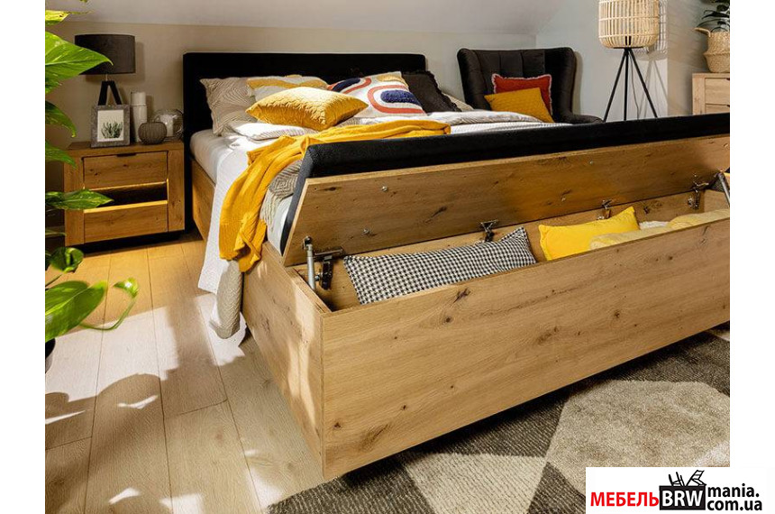 Описание: Кровать (с подъемным механизмом) Ostia LOZ/160/B BRW двухспальная Дуб артизан/дуб черный