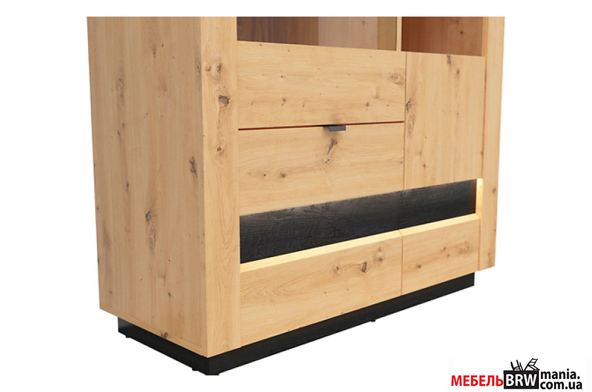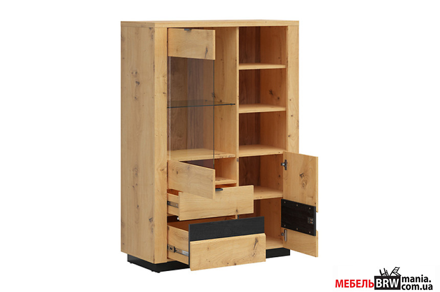 Описание: Витрина Ostia REG1D1W2S/15/10 BRW 2-дверная с 2 ящиками Дуб артизан/дуб черный