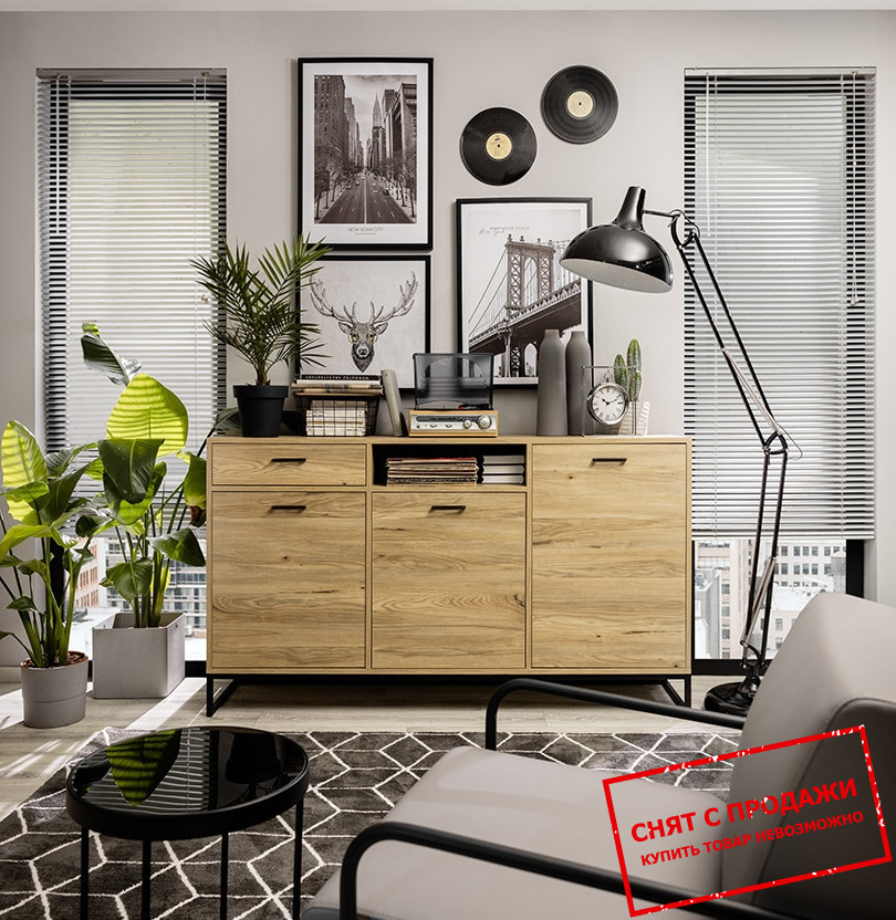 Комод Ramla KOM3D1S BRW 3-дверный с 1 ящиком ножки каркас Ясень белорусский