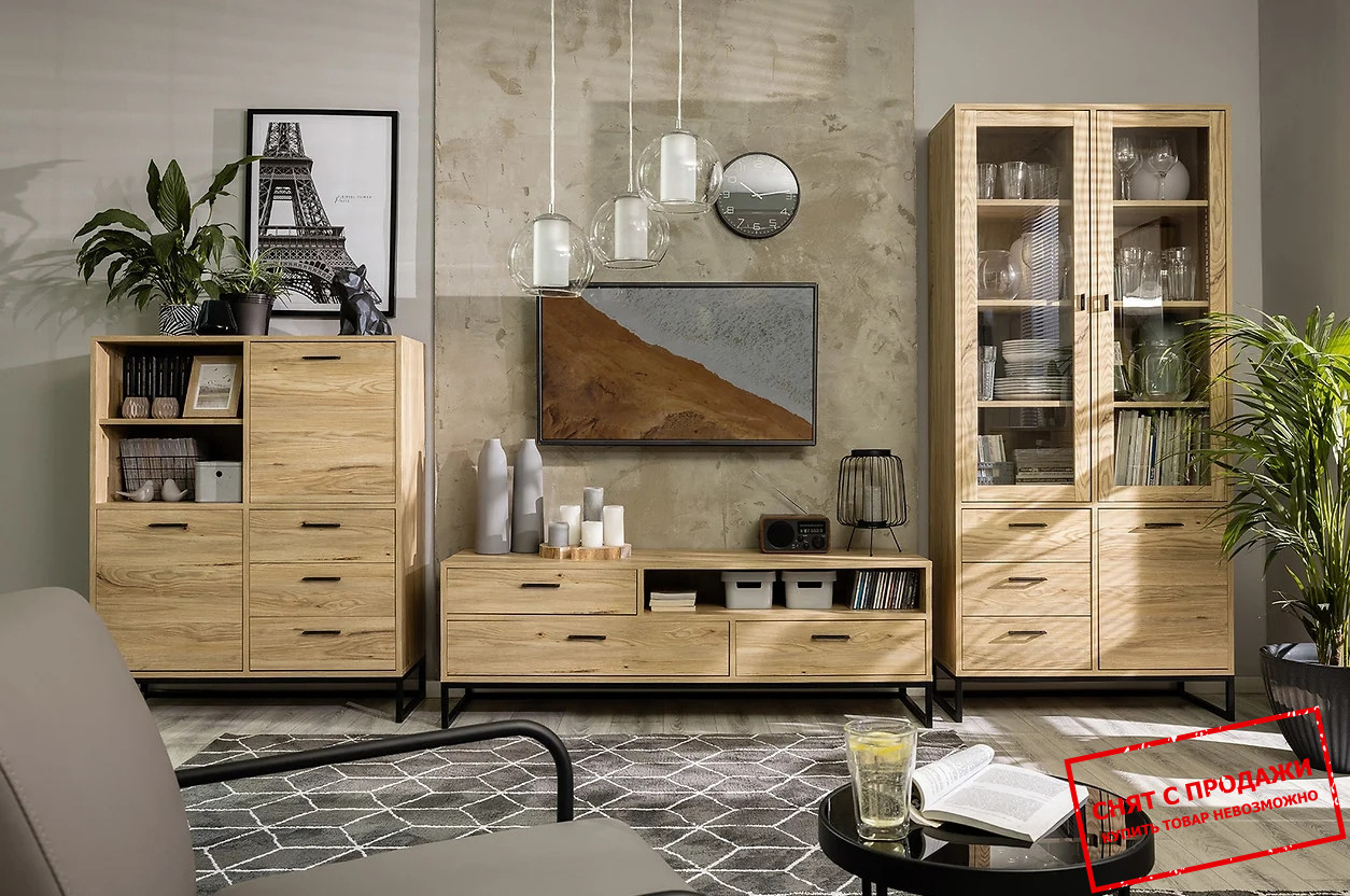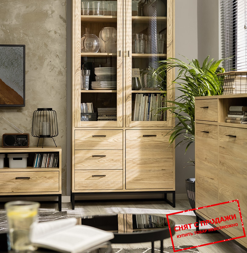 Витрина Ramla REG1D2W3S BRW 3-дверная с 3 ящиками ножки каркас Ясень белорусский