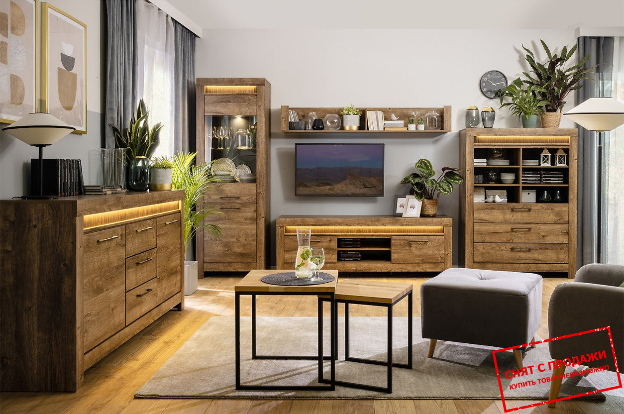Витрина Torin REG1D1W2S BRW 2-дверная с 2 ящиками Дуб риббек коричневый