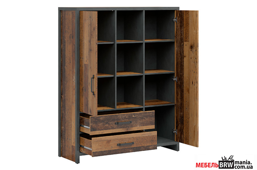 Стеллаж Weston REG2D2S BRW 2-дверный с 2 ящиками Сосна состареная