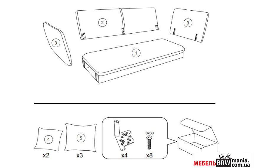 - Спинка Мягкая, Составная с подушек