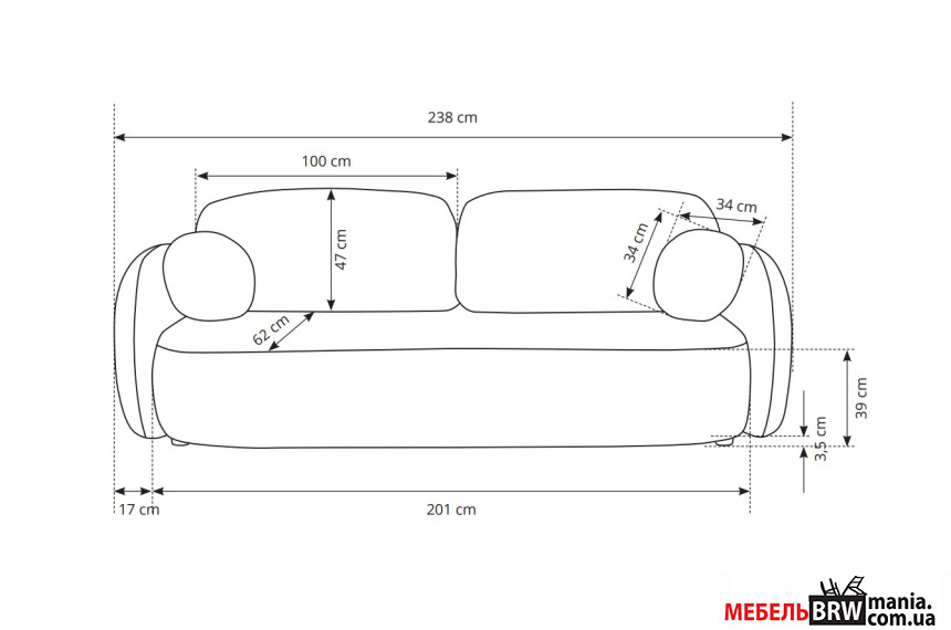 - Габариты модели OLIO Lech Abriamo (Д×Г×В) – 238 × 101 × 86 см.