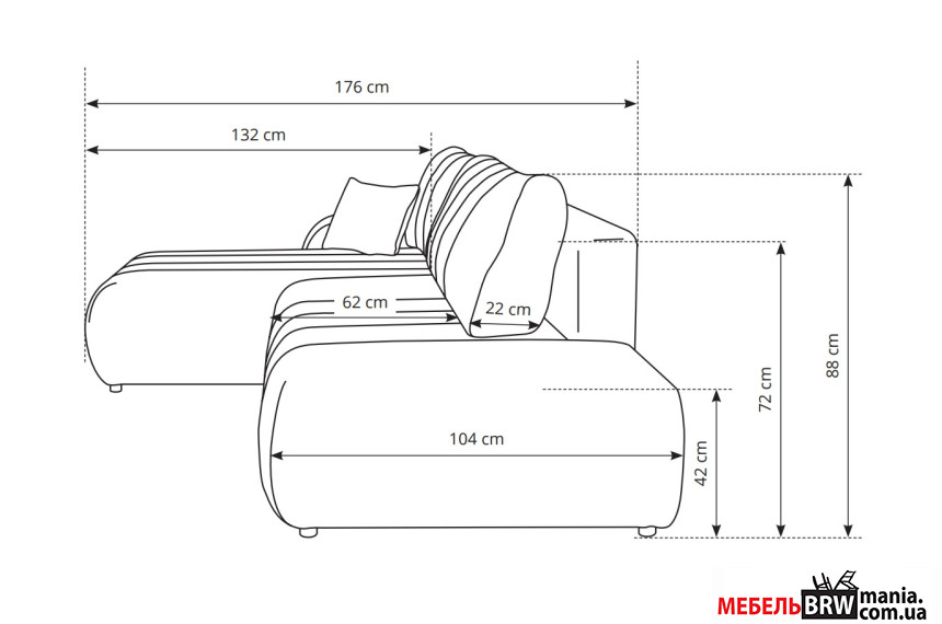 - Габариты (Д×Г×В) – 276×176×88 см.
