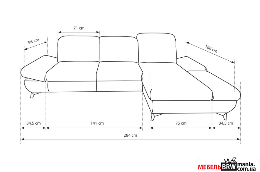 - Габариты дивана (Д×Г×В) – 284×166×97 см.