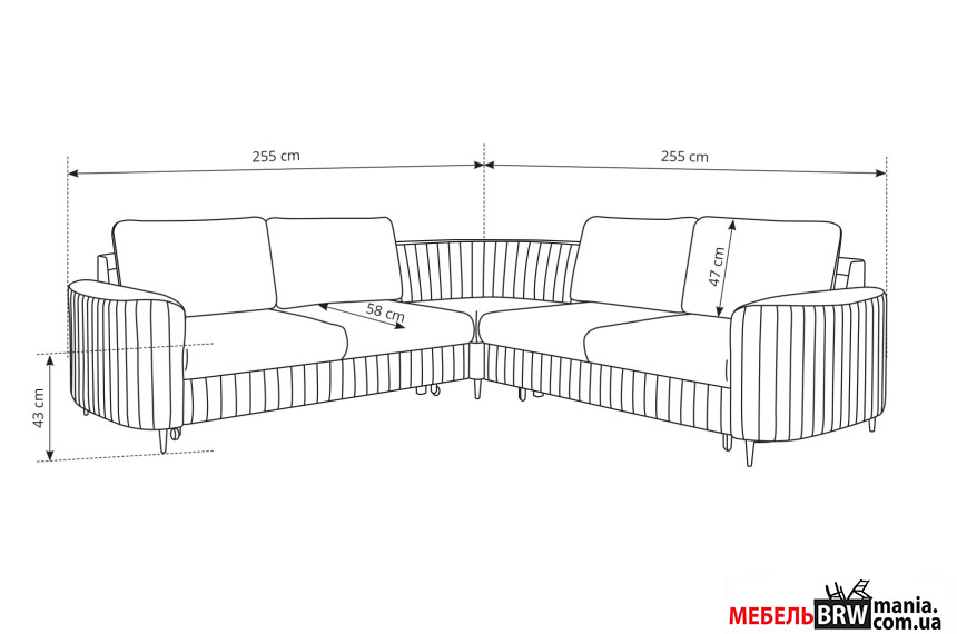 - Глубина: 255 см