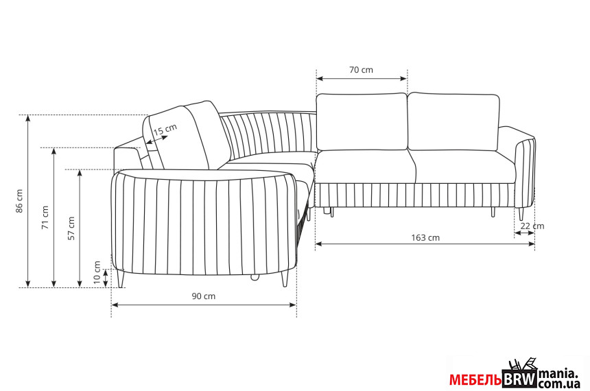 Угловой диван раскладной LAREN на ножках в стиле гламур с модной декоративной строчкой.