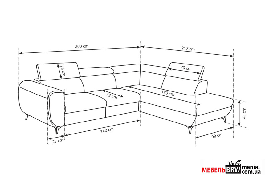 - Глубина: 217 см