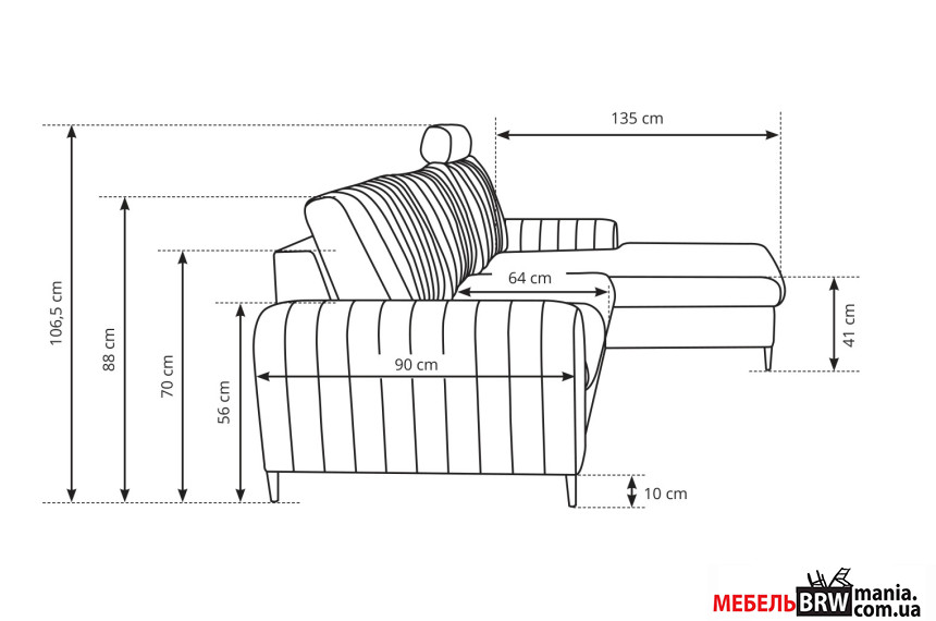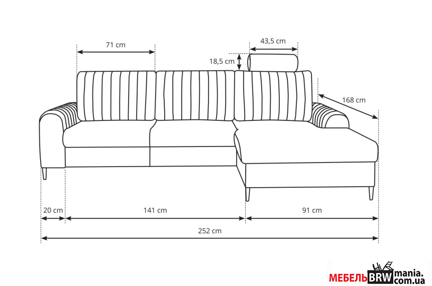 - Габариты дивана (Д×Г×В) – 252×168×107 см.