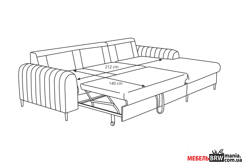 - Спальное место – 140 × 212 см.