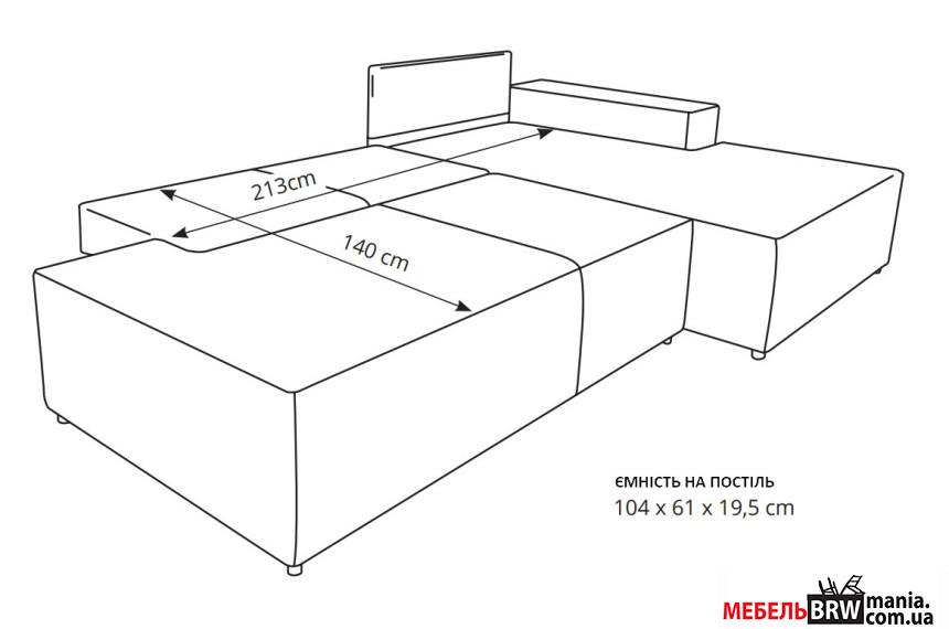 - Спальное место – 140 × 213 см.
