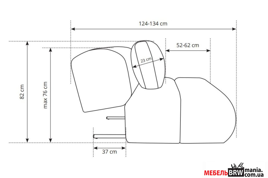 - Габариты кресла (Д×Г×В) – 98 × 134 × 82 см.