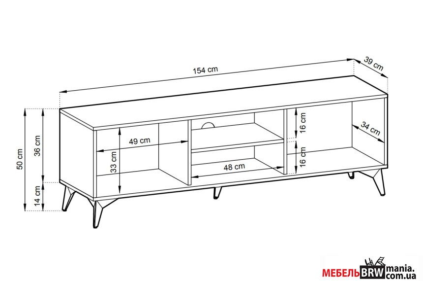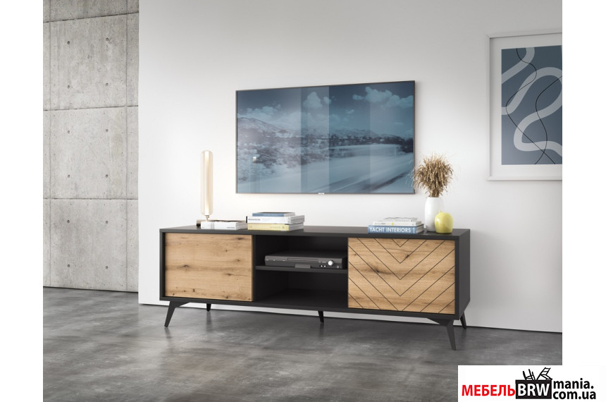 Описание: Тумба под ТВ Adamant 2D/154 2-дверная Дуб эвок/черный
