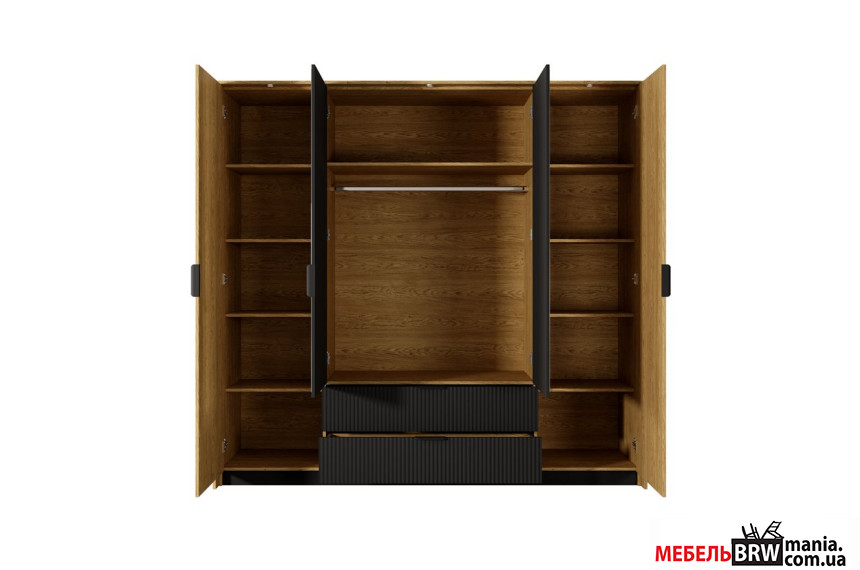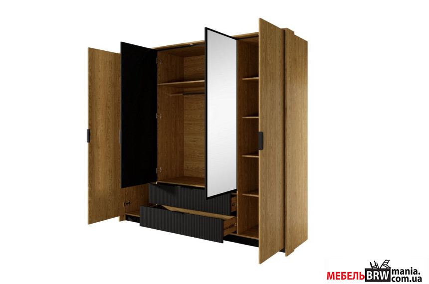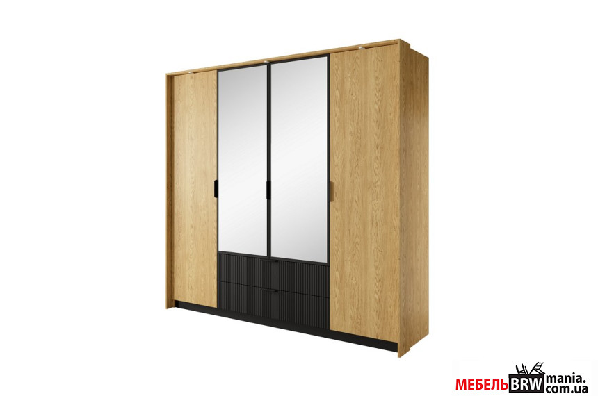Шкаф платяной Perfect Home Балтик / Baltic 4D2S/220 4-дверный с зеркалом Дуб балтик/черный