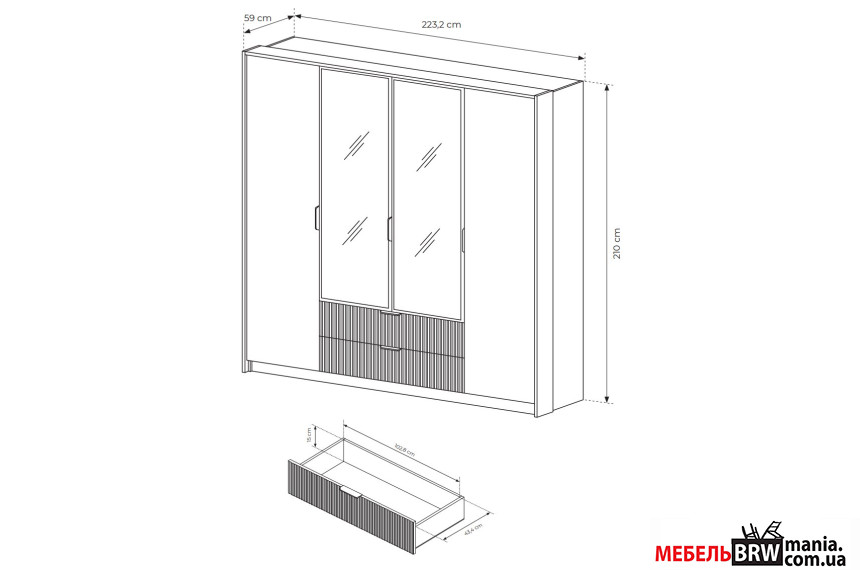 Описание: Шкаф платяной Perfect Home Балтик / Baltic 4D2S/220 4-дверный с зеркалом Дуб балтик/черный