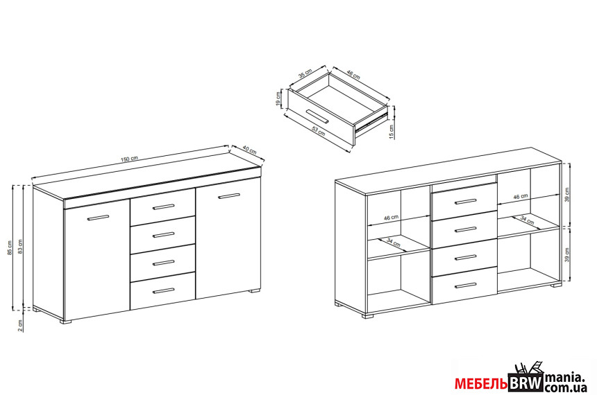 Описание: Комод Dom 2D4S/150 2-дверный с 4 ящиками
