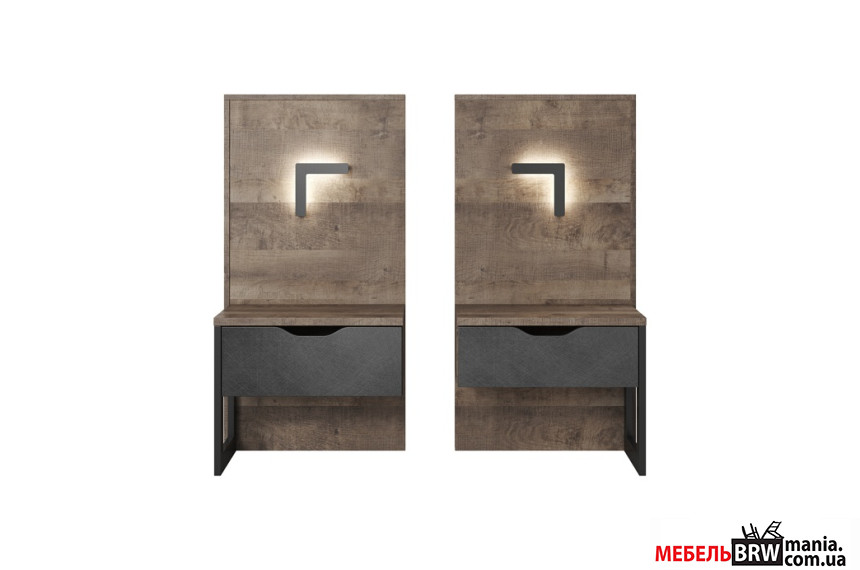 Тумбы прикроватные 2 шт. Perfect Home Арден / Arden 1S/52 с 2 ящиками с подсветкой Дуб санд гранж/матера