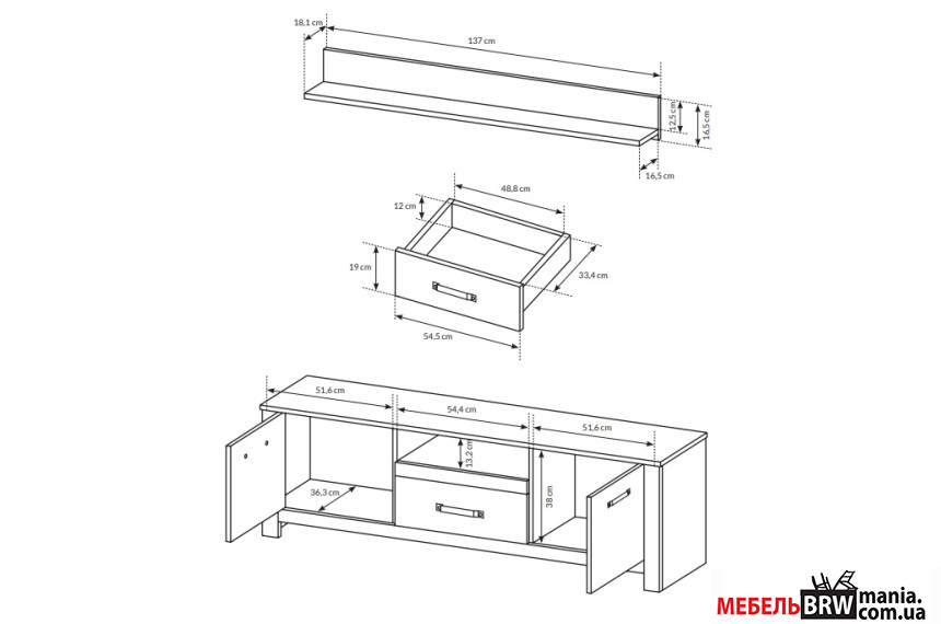 - Размер полки Д-137 Г-18 В-17 см