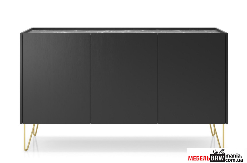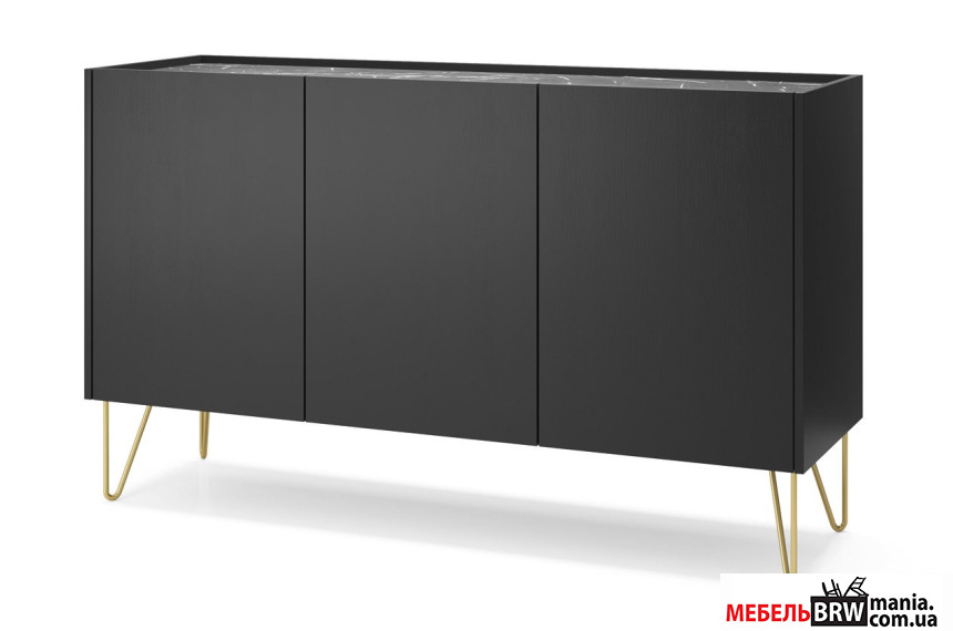 Комод Perfect Home Гармони / Harmony K144 3-дверный с золотыми ножками Черный/черный мрамор роял