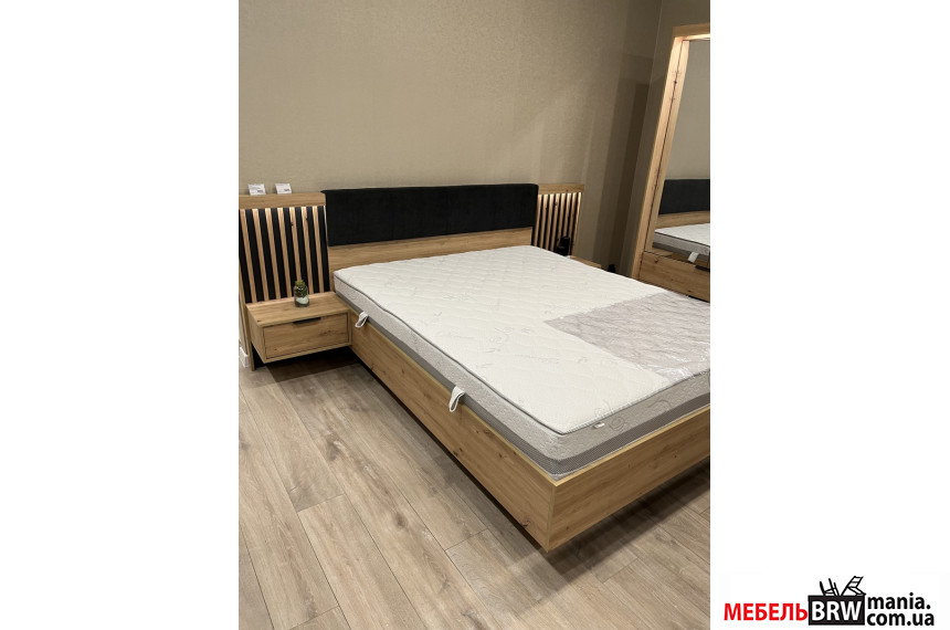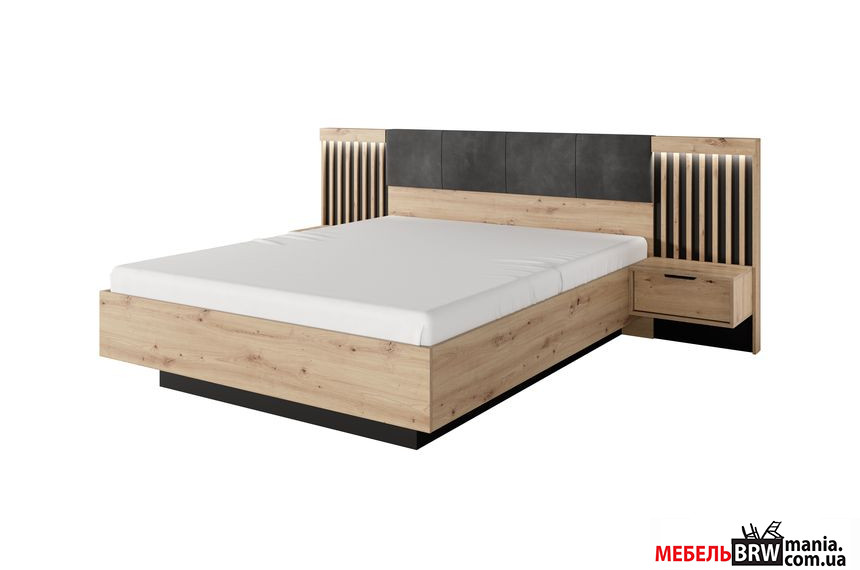 Кровать (каркас) Perfect Home Талли / Tally 160 с тумбами прикроватными и мягким изголовьем двухспальная Дуб артизан/антрацит