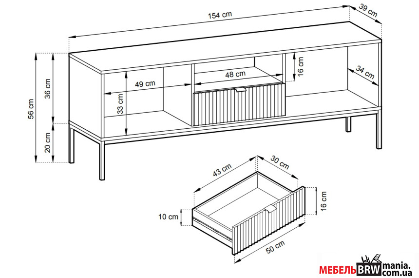 Описание: Тумба под ТВ Ivona 2D1S/154 2-дверная с 1 ящиком