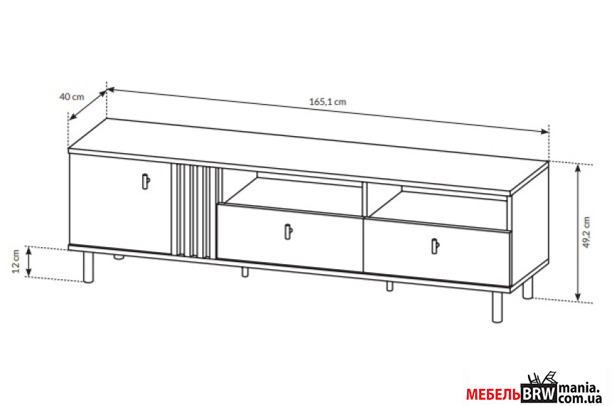 Описание: Тумба под ТВ Perfect Home Мадис / Madis 1D2S/165 1-дверная с 2 ящиками Дуб артизан/антрацит