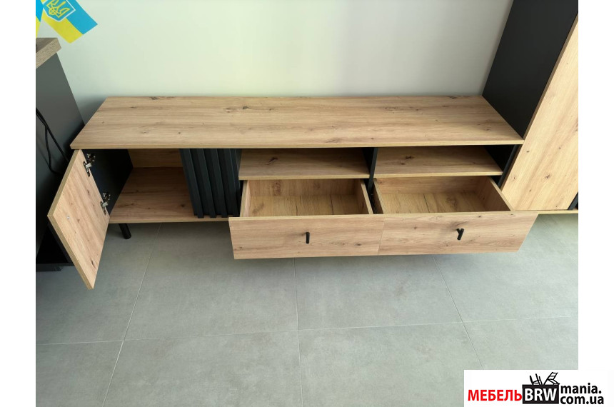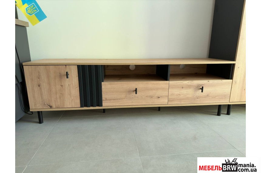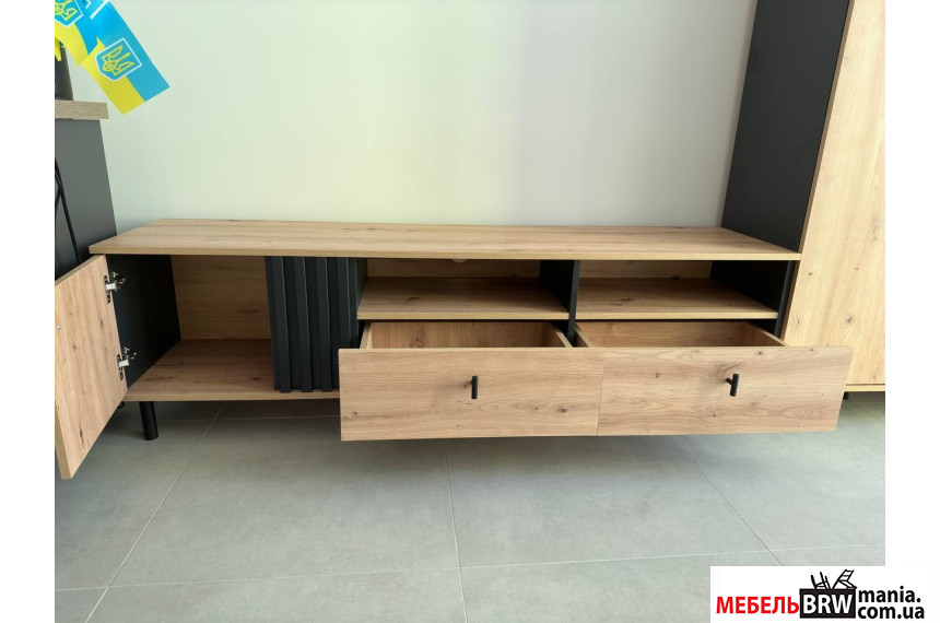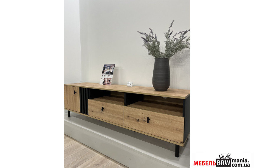 Тумба под ТВ Perfect Home Мадис / Madis 1D2S/165 1-дверная с 2 ящиками Дуб артизан/антрацит