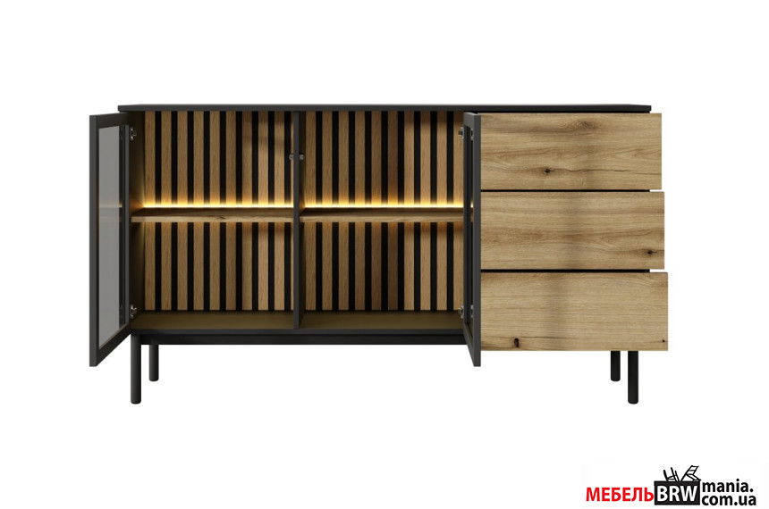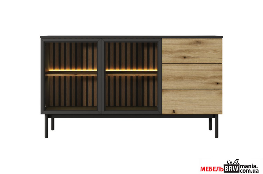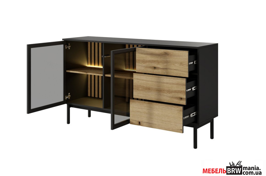Комод с подсветкой Perfect Home Ланг / Lang 2D3S/150 2-дверный с 3 ящиками Черный/дуб эвок