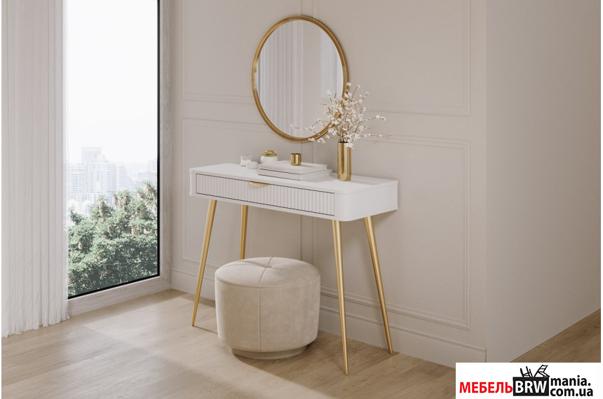 Туалетный столик Lante 1S/100 от польского бренда Perfect Home в изысканном элегантном дизайне – идеальное функциональное дополнение вашей квартиры, которое создаст уютную и стильно организованную beauty-зону в спальне.