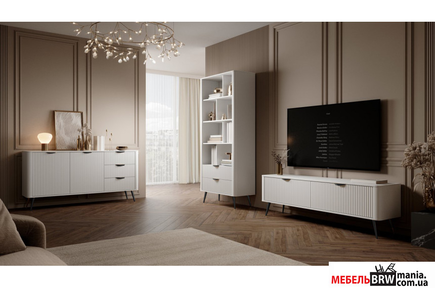 - Корпус тумбы изготовлен из высококачественной ЛДСП 16 мм, рифленые фасады – из МДФ 18 мм. Благодаря такому выбору материалов конструкция приобретает прочность, надежность и высокую стойкость к повреждениям.