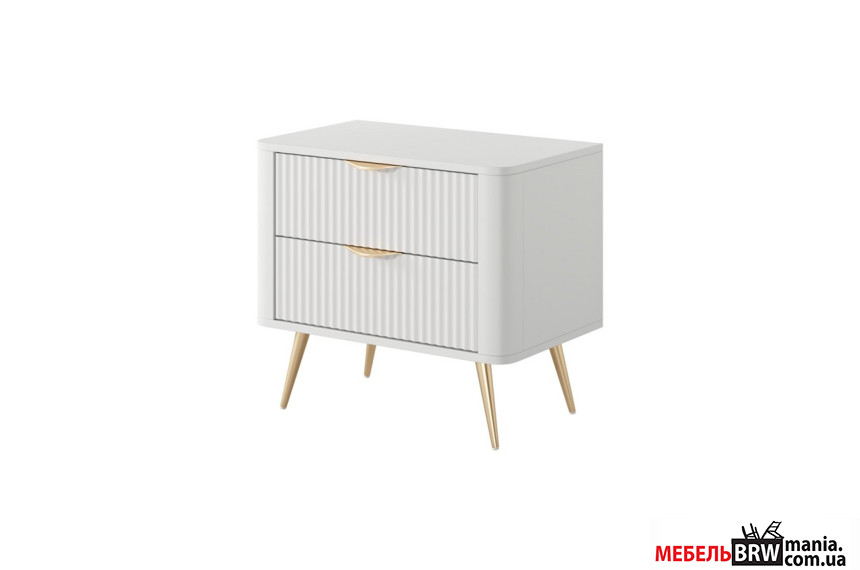 Описание: Тумба прикроватная Perfect Home Ланте / Lante 2S с 2 ящиками и золотыми ножками Белый