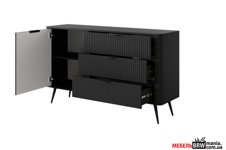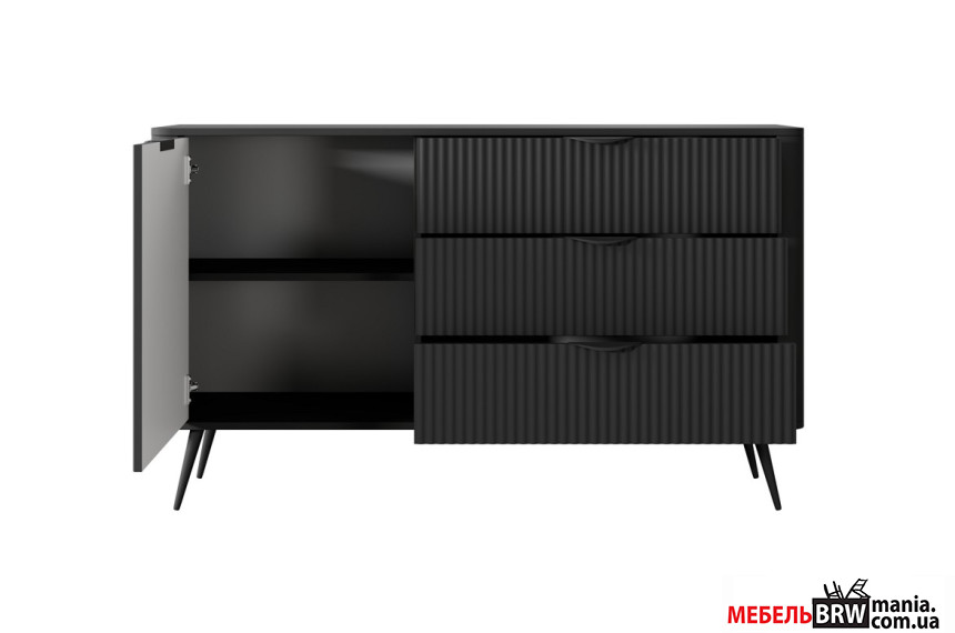Описание: Комод Perfect Home Ланте / Lante 1D3S/138 1-дверный с 3 ящиками и черными ножками Черный