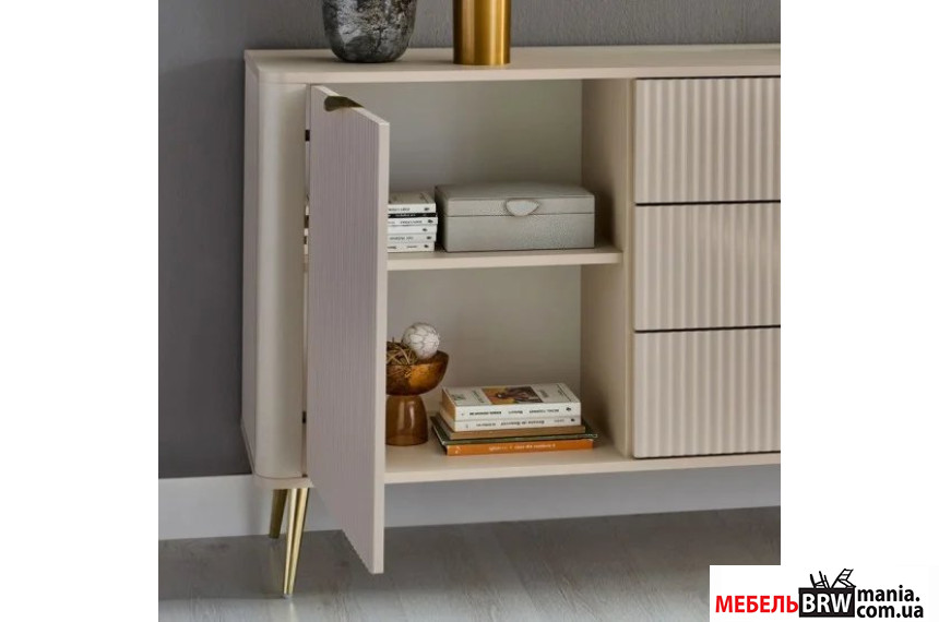 Описание: Комод Perfect Home Ланте / Lante 1D3S/138 1-дверный с 3 ящиками и золотыми ножками Беж