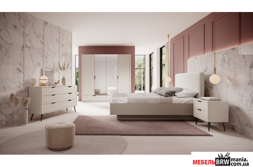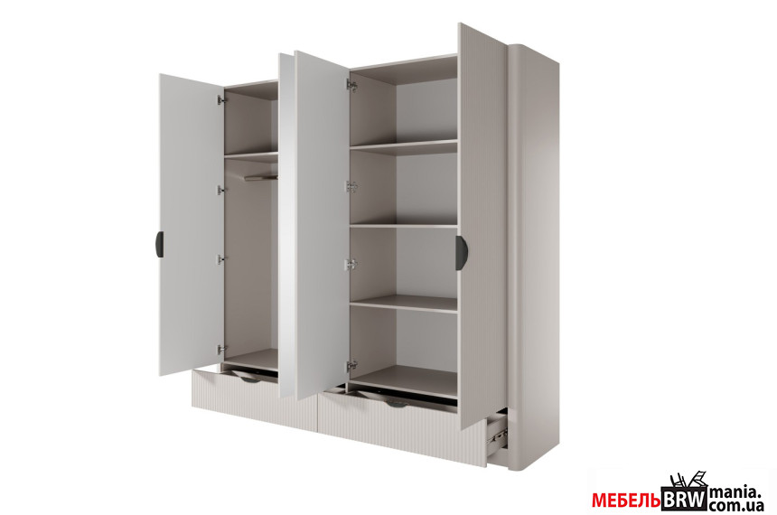 Шкаф платяной Perfect Home Ланте / Lante 4D2S/213 4-дверный с зеркалом и черными ручами Беж