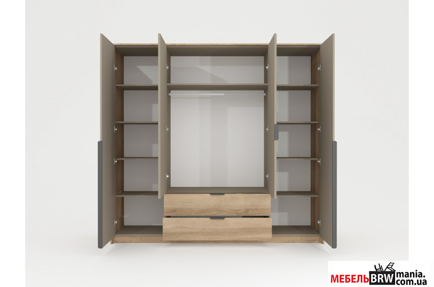 Описание: Шкаф платяной Perfect Home Летто / Letto 4D2S/220 4-дверный Дуб терра темный/серый каменный